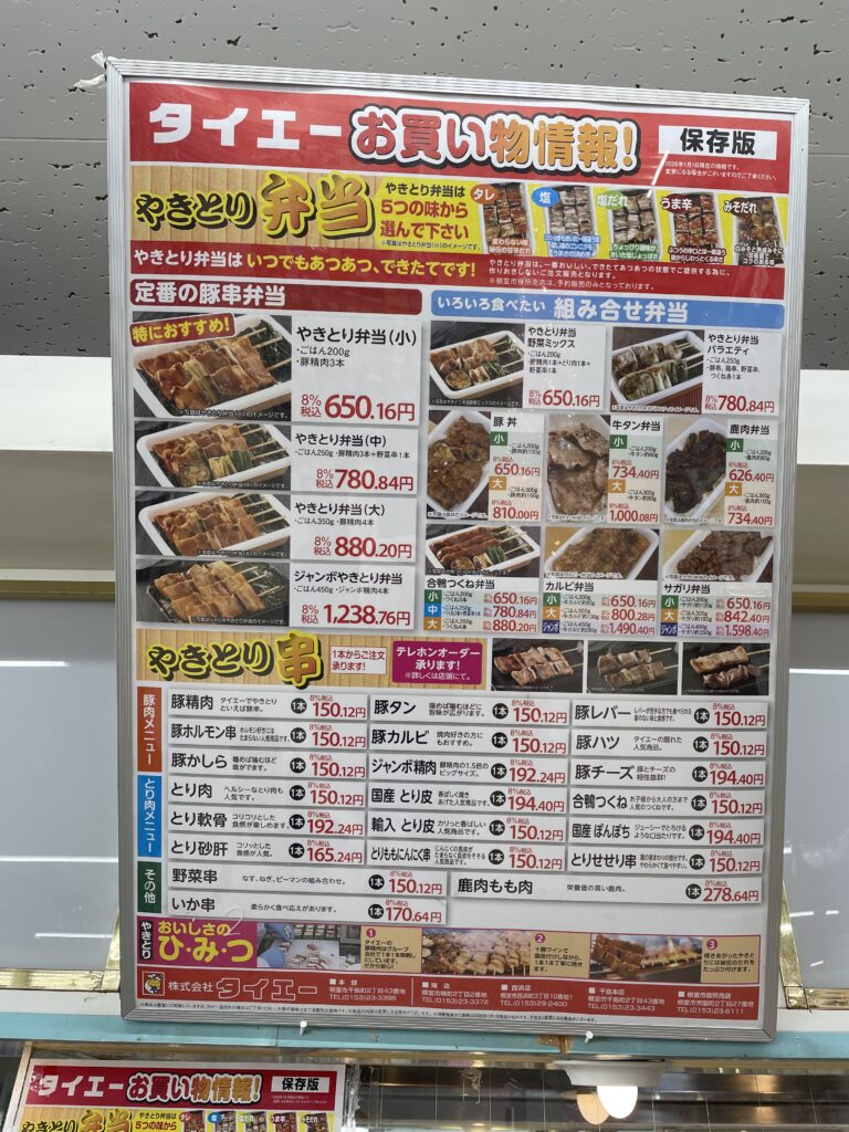 やきとり弁当だけでなく、いろいろなメニューがあります。