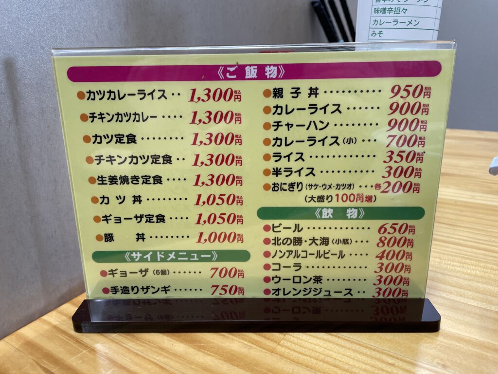 ・予算:1,000〜2,000円程度(ラーメン・ごはん物とメニューが豊富)