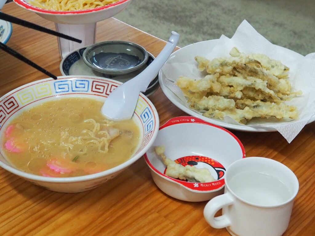味噌ラーメン お子様 とライスについてきたワカサギの天ぷら