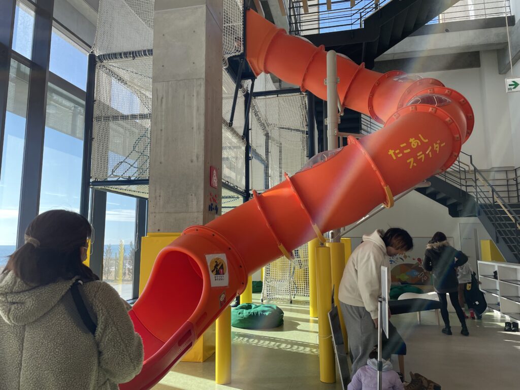 ネットを上に登っていき一番上まで登るとたこあしスライダーで下まで戻ってこれます。